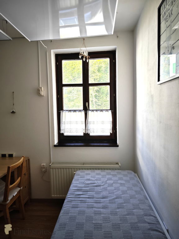 In the heart of picturesque Dobrna, there is a studio apartment available for rent. The apartment boasts an area of 18 square meters, is fully furnished, and is located on the first floor, which allows for easy access.