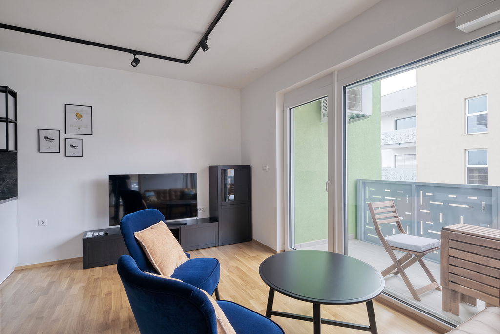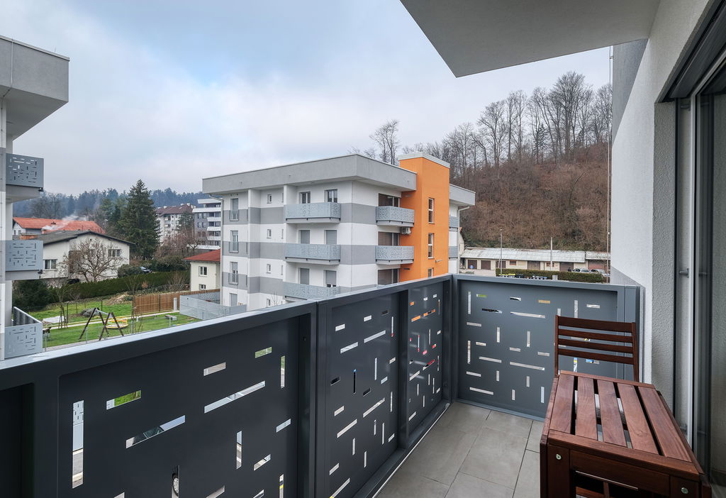 Posebna prednost stanovanja je lep balkon, ki ponuja prijeten prostor za sprostitev, jutranjo kavo ali večerno druženje.