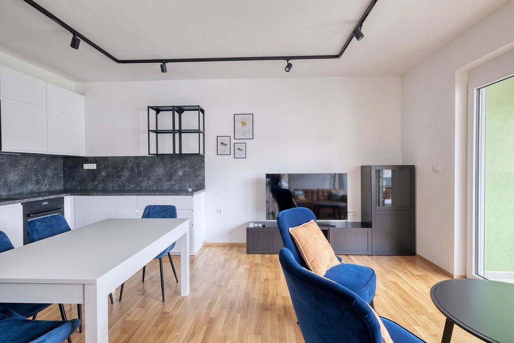 Stanovanje ima lep in zelo funkcionalen tloris, ki omogoča dobro razporeditev prostorov in prijetno bivanje. Prostori so lično opremljeni, stanovanje pa se oddaja polno opremljeno z vsemi gospodinjskimi aparati, zato je vselitev enostavna.