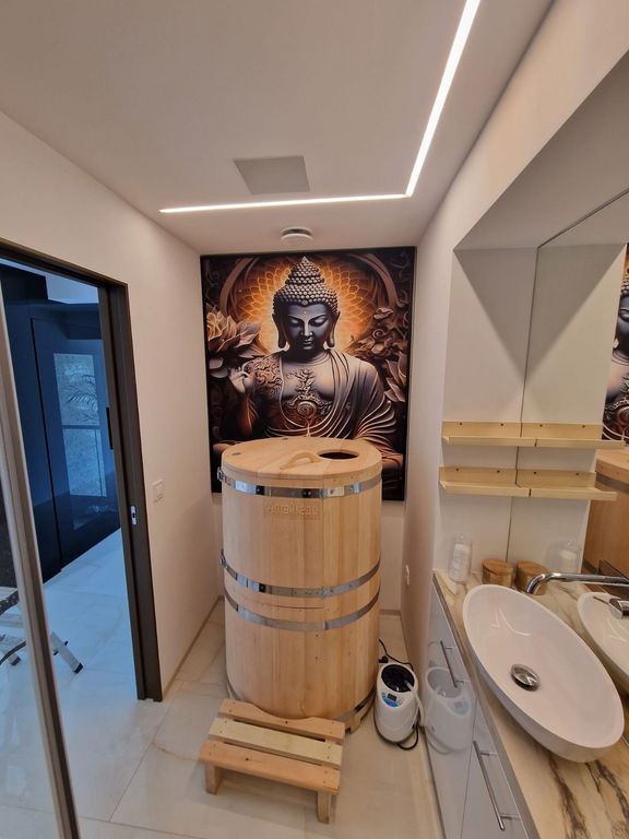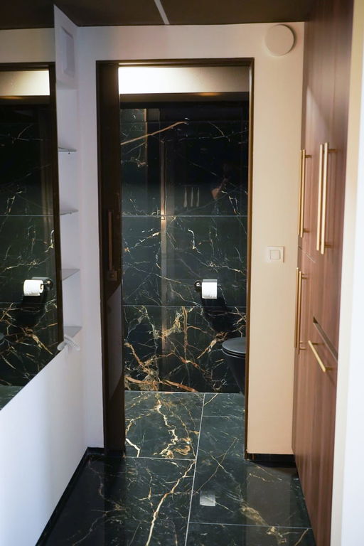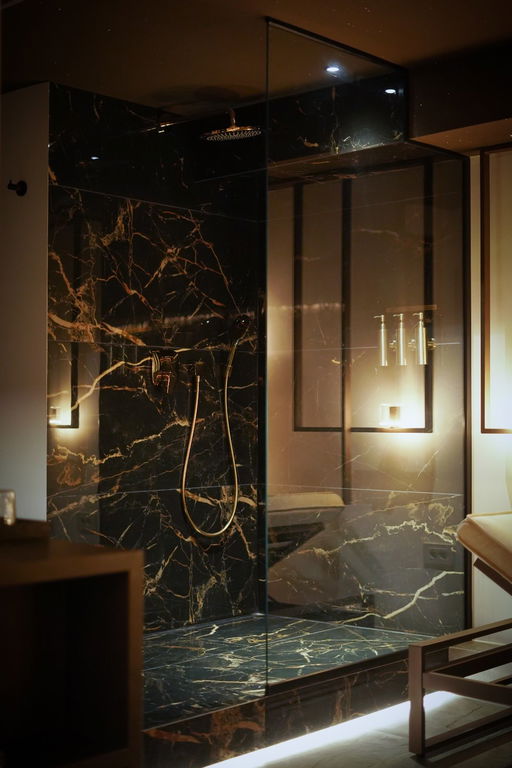 Interier je zasnovan kot celostno SPA doživetje, kjer se nadstandardni materiali in vrhunska oprema združujejo v ambient sprostitve, intime in prestiža. Prostor je v celoti opremljen z: