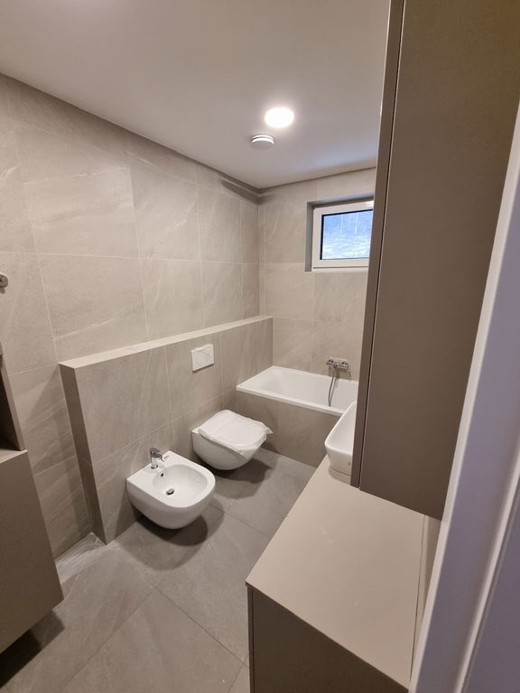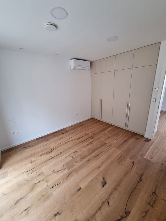 Nepremičnina je novo opremljena in vključuje sodobno kuhinjo, vse vgradne omare ter popolnoma opremljene kopalnice. Bivalni prostor je svetel in odprt, z neposrednim izhodom na zunanji atrij, ki omogoča prijetno druženje in sprostitev na prostem.